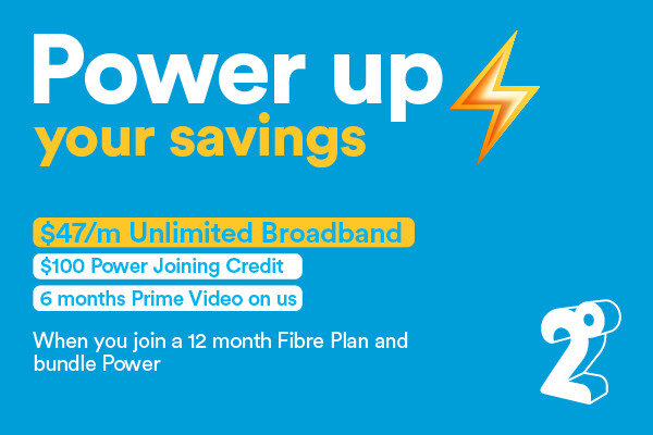 Bundle Unlimited Fibre and Power on a 12-month Plan to score a $100 Power joining credit, PLUS 6 months of Prime Video free.
